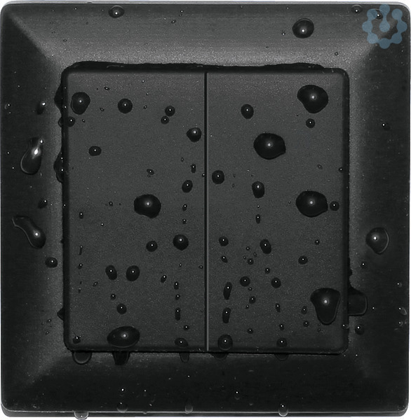 Spritzwasserschutz für FT55 für Doppelwippe, anthrazit. IP54: Geschützt gegen Spritzwasser, Staub und Schmutz. Material: Silikon. Einfache Montage durch nachträgliches Überstülpen bei bereits montierten Tastern.