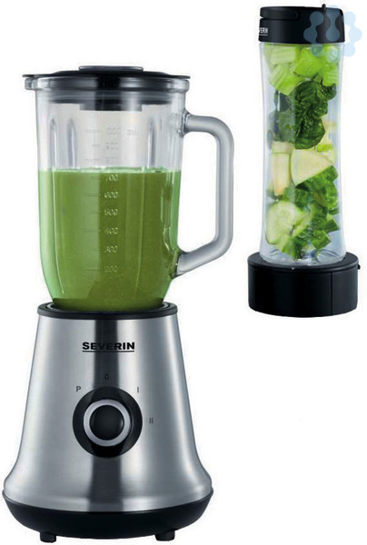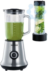 Multimixer + Smoothie Mix & Go, ca. 500 W, ca. 1 L, abnehmbarer Mixbehälter aus Glas mit Ausgusszotte, Ice-Crush geeignet, inkl. Smoothie-Maker aus Tritan (Bisphenol A frei) - Mixer und praktischer Trinkbehälter (ca. 600 ml) in Einem, Edelstahlmesser