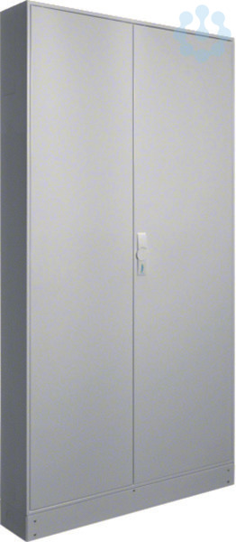 Schrank, univers, IP54/II, 1950x1050x205mm.Einzelstandverteiler für die Innenraummontage mit VDE-Gutachten (Fertigungsüberwachung) nach DIN EN 61439-1/-2/-3 und Maßnorm DIN 43870. Zum Aufbau einer Niederspannungsverteilung bis 400 A, 3AC 230/400 V 50 Hz. Schutzart IP54, Schutzklasse II, Luft- und Kriechstrecken nach DIN VDE 0110-1/-2. Bestehend aus Schrank mit Tür aus pulverbeschichtetem, eingebranntem, stabil profiliertem 1 mm dickem Stahlblech, Innenauskleidung aus Kunststoff. Durchsteckflansche oben eingebaut und unten offen, rückseitige Vorprägung im Kunststoffteil und Sammelschienendurchführungen als beidseitige seitliche Vorprägung im unteren Bereich. Waagerechte Abfangschiene zur Stabilisierung im Schrank enthalten. Tür frontbündig mit innenliegenden, justierbaren Scharnieren, wahlweise rechts oder links anschlagbar mit 110 Grad Öffnungswinkel. Tür mit Stangenverschluß mit Dreipunktschließung. Türverschluß durch andere Schließungen austauschbar. Schrank nebeneinander anflanschbar. Sockelleiste (Höhe 100 mm) serienmäßig montiert mit abnehmbarer Frontblende.