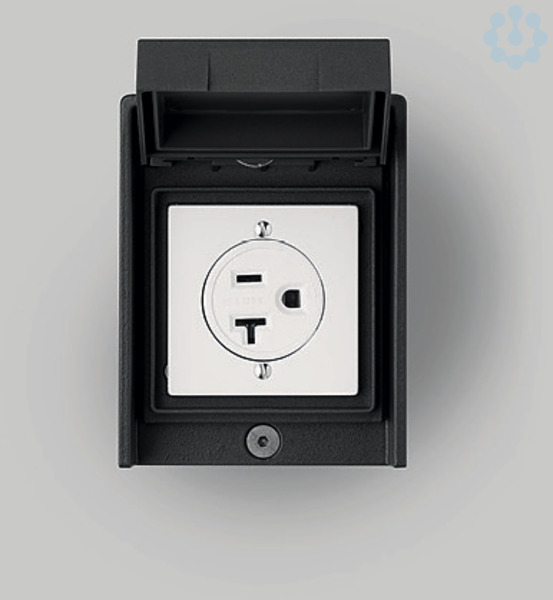 BEGA Einbaugehäuse 70168 mit Installationseinsatz für den Einbau in Maste und Pollerleuchten. Einbaugehäuse können in Rohre mit einem Durchmesser > 82 x 2 mm und in Vierkant-Rohre mit einem Querschnitt von > 80 x 80 x 2 mm eingebaut werden. Erforderliche Einbauöffnung ø 72 mm. Gehäuse besteht aus Aluminiumguss, Farbe Grafit. Geräteträger und Klappe aus verstärktem Ultramid-Kunststoff, Farbe Grafit. Befestigungsschrauben Edelstahl. Öffnungswinkel der Abdeckklappen max. 85°. Mit Schutzkontaktsteckdose US 20 A · 125 V AC. Schutzart IP 44 bei geschlossenem Klappdeckel.