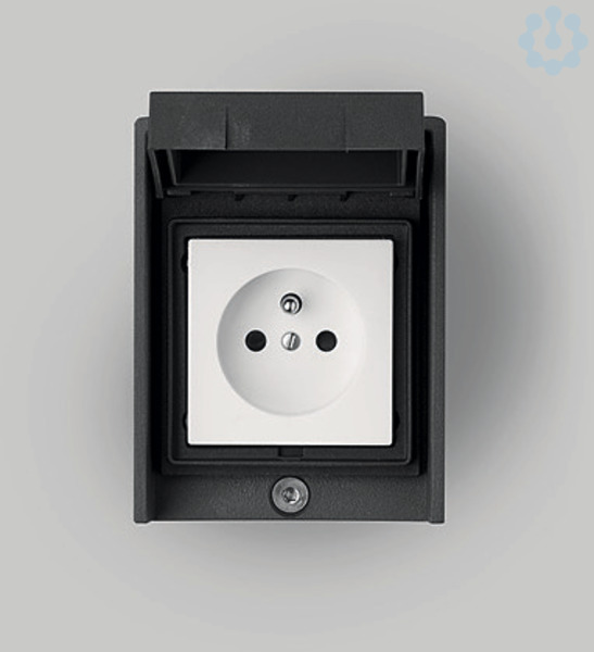 BEGA Einbaugehäuse 70166 mit Installationseinsatz für den Einbau in Maste und Pollerleuchten. Einbaugehäuse können in Rohre mit einem Durchmesser > 82 x 2 mm und in Vierkant-Rohre mit einem Querschnitt von > 80 x 80 x 2 mm eingebaut werden. Erforderliche Einbauöffnung ø 72 mm. Gehäuse besteht aus Aluminiumguss, Farbe Grafit. Geräteträger und Klappe aus verstärktem Ultramid-Kunststoff, Farbe Grafit. Befestigungsschrauben Edelstahl. Öffnungswinkel der Abdeckklappen max. 85°. Mit Schutzkontaktsteckdose B/F 16 A · 250 V AC. Schutzart IP 44 bei geschlossenem Klappdeckel.