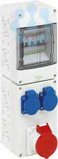 Steckdosenkombination, mit Schutzart IP44, anschlussfertig, nach EN 61439-3, hohe mechanische Belastbarkeit, temperaturunempfindlich, kombinierbar