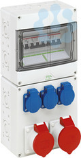 Steckdosenkombination, mit Schutzart IP44, anschlussfertig, nach EN 61439-3, hohe mechanische Belastbarkeit, temperaturunempfindlich, kombinierbar