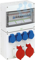 Steckdosenkombination, mit Schutzart IP44, anschlussfertig, nach EN 61439-3, hohe mechanische Belastbarkeit, temperaturunempfindlich, kombinierbar