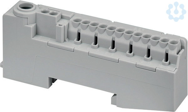 Klemme, für starre Leiter, 15 Klemmstellen, 1x schraubbare Klemmstelle 25mm² (1,5-25mm² re, 1-16mm² rf+AD), 2x schraubenlose Klemmstelle 4mm² (1-4mm² re, 1-2,5mm² rf+AD), 12x schraubenlose Klemmstellen 2,5mm² (1-2,5mm² re, 0,75-1,5mm² rf+AD), zur Montage auf DIN Tragschienen 35mm, bei einer Strombelastbarkeit von 76 A, grau