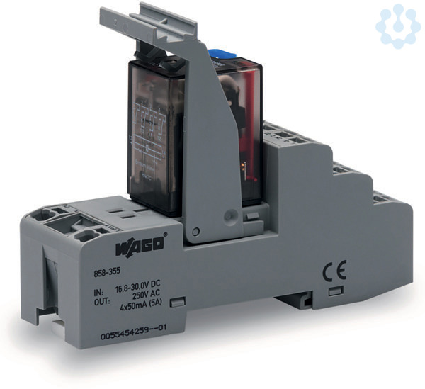 Relaismodul; Eingangsnennspannung DC 24 V; 4 Wechsler; Grenzdauerstrom 5 A; mit Goldkontakten; mit Handbedienung; Bahn; Statusanzeige rot; 31 mm Baubreite