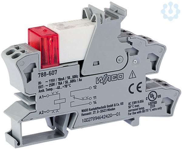 Relaismodul; Eingangsnennspannung AC 115 V; 1 Wechsler; Grenzdauerstrom 16 A; mit Goldkontakten; Statusanzeige rot; 15 mm Baubreite; 2,50 mm²; grau