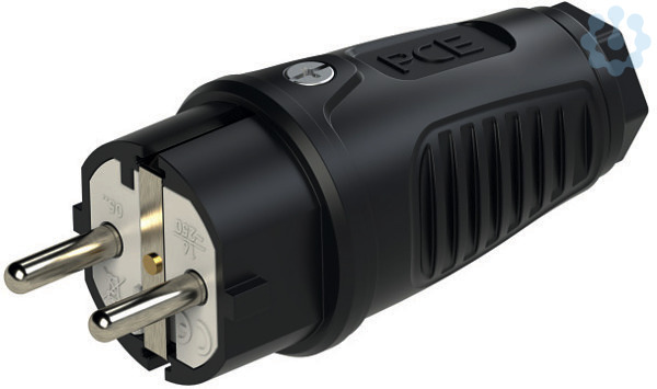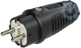 Schutzkontaktstecker Serie TAURUS2 - Gummi; Farbe (Haube/Ring): schwarz/schwarz; Material (Haube/Kontaktträger): TPE/PA6; Schutzkontaktsystem: österr./deutsch ; 16A / 250V AC / 3p (2P+E), Schutzart: IP54