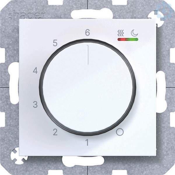 Temp.regler 230V/15W, Dreh-/Druckknopf, Heizen/Kühlen, A.x/C.x, lichtweiß glänz