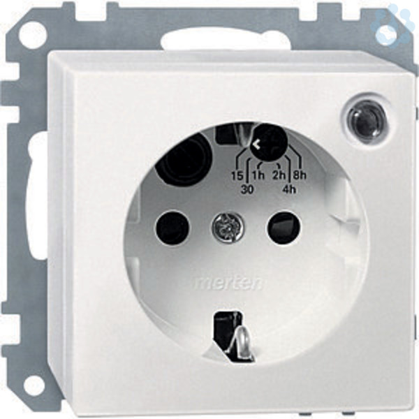 Integrierter erhöhter Berührungsschutz gemäß VDE 0620 Teil 1. Bedienbar über einen Taster an der Steckdose oder mit einem Nebenstellentaster. Steckdose schaltet nach einer voreinstellbaren Zeit ab. Abschalten vor Ablauf der Zeit möglich. Mit Schraubbefestigung. Mit Schraubklemmen. Zeiteinstellung: stufig einstellbar, 15 min, 30 min, 1 h, 2 h, 4 h, 8 h. Feinschutz: Elektronischer Überlast-/ Temperaturschutz. Sicherung: 8 A. Anzeigeelemente: grüne LED für Zustandsanzeige. Nebenstellenbetrieb: Nebenstellen-Einsatz 573999. Nebenstellen-TELE-Einsatz 573998. Adapter: Adapter System M 5184xx Hinweis: Flächenbündiger Einbau bei Installation in 60er Installationsdose möglich. Lieferumfang: Mit 2 Schrauben zur Befestigung auf der Installationsdose. Material Thermoplast edelmatt. Farbe polarweiß.