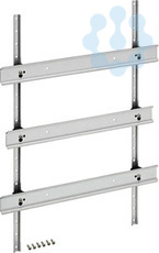 Traggestell mit Normschienen Breite 35mm, in den Höhen 7,5 und 15mm, inkl. Befestigungsschrauben zur Bodenmontage. Optionale Montage mittels Montagehaltern in unterschiedlichen Höhen möglich, ohne Berührungsschutz, 3-reihig, 18 Teilungseinheiten, Normschienen 35 x 7,5mm, zur Montage in GEOS-L/-S 4050