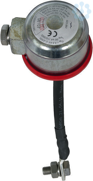 Trennfunkenstrecken für den Ex-Bereich zum indirekten Verbinden/Erden betriebsmäßig getrennter Anlagenteile bei Blitzeinwirkung. Zur sicheren Anwendung in Explosionsschutzzone 2 (Gase). ATEX-zertifizierte Trennfunkenstrecke für den Blitzschutzpotentialausgleich nach DIN EN 62305 / VDE 0185 in bewährter Ausführung mit flexiblem Leiteranschluss.