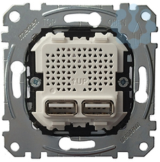 USB 2.0 Spannungsversorgung mit zwei Ausgängen zum gleichzeitigen Betreiben/Laden von zwei USB-Geräten mit integriertem Akku. Netzspannung. Nennspannung AC 100-240 V +/- 10%, 50-60 Hz. Eigenverbrauch < 0,1 W. USB Ausgänge. Ausgangsspannung DC 5 V +/- 5%. Nennausgangsstrom 1x2100 mA (nur bei Nutzung des linken Anschlusses). 2x1050 mA. Typ A+A USB Standard 2.0. Zu komplettieren mit Zentralplatte für USB Ladestation-Einsatz System M MEG4367-03xx /04xx, System Design MEG4367-60xx.