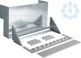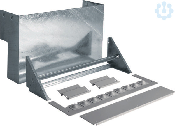 Wandkonsole, KVS, Größe 2, mit Abdeckplatte, 9 x Steckschieber, 50 - 185 mm².Wandkonsole aus feuerverzinktem Stahlblech. Mit seitlichen Öffnungen, Abdeckplatte, Steckschiebern mit abgestufter Dichtung für Kabel 50-185 mm² und C-Profilschiene für Bügelschellen als Zugentlastung für Leitungen.