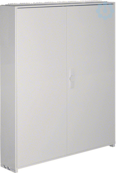 Schrank, univers, IP44/I, 1250x1050x205mm, leer.Wandaufbauschrank für die Innenraummontage mit VDE-Gutachten (Fertigungsüberwachung) nach DIN EN 61439-1/-3 und Maßnorm DIN 43870, zur Aufputz-, Unterputz- oder teilversenkter Montage. Zum Aufbau einer Niederspannungsverteilung bis 400 A, 3AC 230/400 V 50 Hz. Schutzart IP44, Schutzklasse I, Luft- und Kriechstrecken nach DIN VDE 0110-1/-2. Bestehend aus Schrank mit Tür aus pulverbeschichtetem, eingebranntem, stabil profiliertem 1 mm dickem Stahlblech, Innenauskleidung aus Kunststoff. Durchsteckflansche oben und unten je Feld eingebaut, rückseitige Vorprägung im Kunststoffteil und Sammelschienendurchführungen als beidseitige seitliche Vorprägung im unteren Bereich. Tür frontbündig mit innenliegenden, justierbaren Scharnieren, wahlweise rechts oder links anschlagbar mit 110 Grad Öffnungswinkel. Tür mit Vorreiber, ab Breite 800 mm und bei allen Schränken ab einer Höhe von 1250 mm mit Stangenverschluß mit Dreipunktschließung.