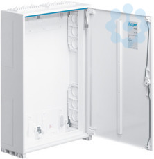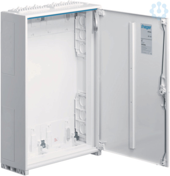 Schrank, univers, IP44/I, 800x550x205mm, leer.Wandaufbauschrank für die Innenraummontage mit VDE-Gutachten (Fertigungsüberwachung) nach DIN EN 61439-1/-3 und Maßnorm DIN 43870, zur Aufputz-, Unterputz- oder teilversenkter Montage. Zum Aufbau einer Niederspannungsverteilung bis 400 A, 3AC 230/400 V 50 Hz. Schutzart IP44, Schutzklasse I, Luft- und Kriechstrecken nach DIN VDE 0110-1/-2. Bestehend aus Schrank mit Tür aus pulverbeschichtetem, eingebranntem, stabil profiliertem 1 mm dickem Stahlblech, Innenauskleidung aus Kunststoff. Durchsteckflansche oben und unten je Feld eingebaut, rückseitige Vorprägung im Kunststoffteil und Sammelschienendurchführungen als beidseitige seitliche Vorprägung im unteren Bereich. Tür frontbündig mit innenliegenden, justierbaren Scharnieren, wahlweise rechts oder links anschlagbar mit 110 Grad Öffnungswinkel. Tür mit Vorreiber, ab Breite 800 mm und bei allen Schränken ab einer Höhe von 1250 mm mit Stangenverschluß mit Dreipunktschließung.