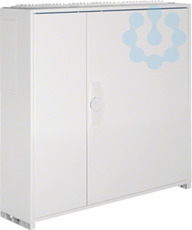 Schrank, univers, IP44/II, 800x800x205mm, leer.Wandaufbauschrank für die Innenraummontage mit VDE-Gutachten (Fertigungsüberwachung) nach DIN EN 61439-1/-3 und Maßnorm DIN 43870, zur Aufputz-, Unterputz- oder teilversenkter Montage. Zum Aufbau einer Niederspannungsverteilung bis 400 A, 3AC 230/400 V 50 Hz. Schutzart IP44, Schutzklasse II, Luft- und Kriechstrecken nach DIN VDE 0110-1/-2. Bestehend aus Schrank mit Tür aus pulverbeschichtetem, eingebranntem, stabil profiliertem 1 mm dickem Stahlblech, Innenauskleidung aus Kunststoff. Durchsteckflansche oben und unten je Feld eingebaut, rückseitige Vorprägung im Kunststoffteil und Sammelschienendurchführungen als beidseitige seitliche Vorprägung im unteren Bereich. Tür frontbündig mit innenliegenden, justierbaren Scharnieren, wahlweise rechts oder links anschlagbar mit 110 Grad Öffnungswinkel. Tür mit Vorreiber, ab Breite 800 mm und bei allen Schränken ab einer Höhe von 1250 mm mit Stangenverschluß mit Dreipunktschließung.