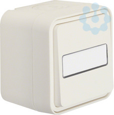 Wechselschalter mit Beschriftungsfeld AP W.1 polarweiß.Wechselschalter AP mit Beschriftungsfeld - beleuchtet, IP55. Für Beleuchtung, mit blauem LED-Aggregat 230 V für Schalter/Taster, mit N-Klemme, mit Steckklemmen, Beschriftungsfeld ca. 50 x 16 mm, Beschriftungsfeldhöhe für P-touch Band 12 mm ausgelegt, mit einer Einführung für 2 Leitungen und einer Einführung für Leitung oder Rohr, vollflächige Dichtung unter dem Gehäuseboden zur Abdichtung der Gehäuserückseite, gut zugängliche, trichterförmige Montagelöcher in den Gehäusen, eine Wago 2-Leiter Verbindungsklemme für Verdrahtung beiliegend, zwei Einrastplätze für Wago 2-Leiter Verbindungsklemmen im Gehäuseboden, viel Platz zur Verdrahtung unter den Sockeln der Einsätze (Hohlboden), einfache Montage des Einsatzes im Gehäuse durch Einrasten, sichere Fixierung des Rahmens am Gehäuse über Bajonett-Schnellverschluss, Gehäuseschrauben aus Edelstahl Rostfrei. Aufputz-Installation. Material: Kunststoff, Thermoplast, schlagfest.
