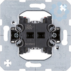 Serientaster 2 Schließer mit getrennten Eingangsklemmen.Wippentaster, 2 Schließer, getrennte Eingangsklemmen, beleuchtbar mit Glimm- und Glühaggregat mit N-Klemme. Für Beleuchtung mit Steckklemmen. Mit Glimmaggregat im Sinne der Arbeitsstättenverordnung beleuchtbar.