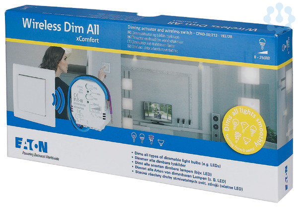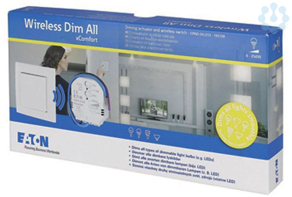 Vorprogrammiertes drahtloses Dimpaket. Dimmt alle Arten von dimmbaren Lampen (z. B. LED). Gleichmäßig dimmen, kein Nachglühen der LED (Neutralleiter benötigt). Einfache Installation ohne größere Bauarbeiten. Drahtloser Druckknopf überall, wo Sie mögen. Kompatibel mit universellen 55mm Schaltanlagen.