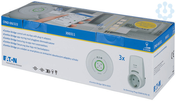 Wireless xComfort Bridge Paket mit 3 Zwischenstecker Smart-Dimmaktoren 0–250W (R/L/C/LED). Einfache DIY-Installation. Einfache Konfiguration und Steuerung über App (iOS, Android). Keine Programmierkenntnisse erforderlich. Dimmt alle Arten von dimmbaren Lampen (z. B. LED) ab 0 W!. Gleichmäßiges dimmen, kein Nachglühen der LED, geräuschlos.