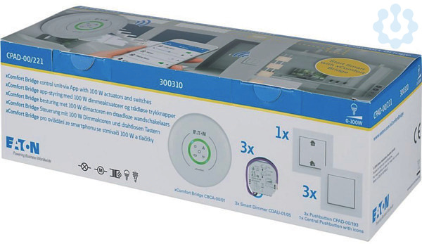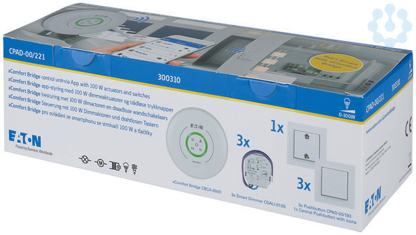 Wireless xComfort Bridge Paket, Unt erputz, 3 Smart-Dimmaktoren, R/L/C/