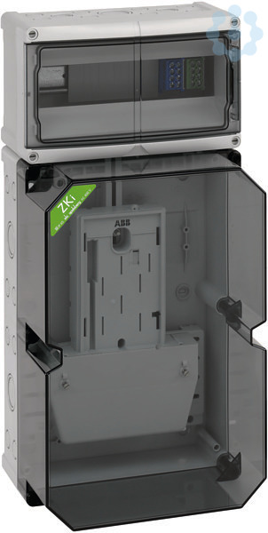 Zählergehäuse, mit transparentem Deckel, serienmäßig plombierbar, mit montierter BKE-A für den elektronischen Haushaltszähler, serienmäßig plombierbarer Konsumentenraum oben, mit 35mm Normschiene und PE/N-Doppelklemmen, mit Doppelmembranstutzen, Verschluss- und Isolierstopfen,