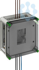 Zählergehäuse, Schutzart IP65, Schlagfestigkeit IK08, Schutzklasse II, Bemessungsspannung 400V AC, halogenfrei
