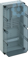 Zählergehäuse, mit transparentem Deckel, serienmäßig plombierbar, mit montiertem Zählerkreuz für Drehstromzähler und Zählerbefestigungsschrauben, mit 35mm Normschiene im Anschlussraum, mit Doppelmembranstutzen, Verschluss- und Isolierstopfen,