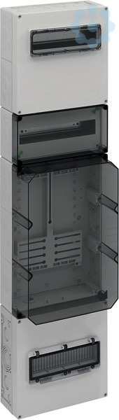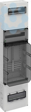 Zählerverteilung in Mehrfach-Kastenbauform nach DIN EN 61439-2/-3, serienmäßig plombierbar, zur Aufputz-Montage im ungemessenen Bereich, Geräte-Einbauflächen nach DIN 43870-1, Zähleranschlussleitungen 5-polig. Einsatz nach individueller Freigabe durch den zuständigen Netzbetreiber, mit Verschlussstopfen, mit Isolierstopfen, mit beiliegenden Belüftungsstopfen IP44 zur Verminderung von Kondenswasser, Oberer Anschlussraum, 300mm, ausgerüstet mit 35mm Normschienen zur Aufnahme der Hauptleitungsabzweigklemme HA25-53(Zubehör) sowie Konsumentenraum mit Klappfenster 12TE für Reiheneinbaugeräte, inkl. schraubenlose PE/N-Klemmschiene mit jeweils 3 schraubbaren Klemmstellen, 2,5-16mm², 14 schraubenlosen Klemmstellen, 1,5-4mm², Raum für Zusatzanwendungen, 150mm, 12TE, ausgerüstet mit 35mm Normschiene zur Aufnahme von zusätzlichen Betriebsmitteln des Netzbetreibers, Messstellenbetreibers oder Messdienstleisters, mit plombierbarer Berührungsschutzabdeckung und transparentem Deckel, Zählerfeld, 450mm, mit transparentem Deckel, für 1 Zähler mit Drei-Punkt-Befestigung, mit montiertem Zählerkreuz für Drehstromzähler und Zählerbefestigungsschrauben, Befestigungsmaße nach DIN 43870-2, Unterer Anschlussraum, 300mm, serienmäßig plombierbar, mit 35mm Normschiene für Hauptsicherungsautomat, mit PE/N-Doppelklemmen, mit Klappfenster 12TE für Laienbedienung der Hauptsicherungsautomaten und zusätzlichem Raum für Überspannungsschutzgeräte, Leitungseinführung durch Kabelverschraubung (IP65, Zubehör) oder Stufennippel M40 (IP55, beiliegend)