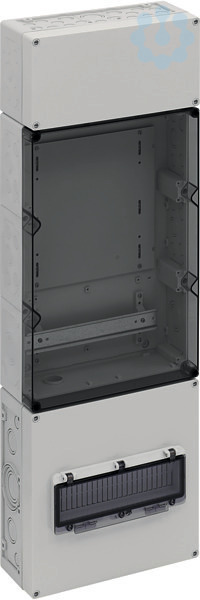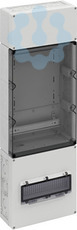 Zählerverteilung in Mehrfach-Kastenbauform nach DIN EN 61439-2/-3, serienmäßig plombierbar, zur Aufputz-Montage im ungemessenen Bereich, Geräte-Einbauflächen nach DIN 43870-1, Zähleranschlussleitungen 5-polig. Einsatz nach individueller Freigabe durch den zuständigen Netzbetreiber, mit Verschlussstopfen, mit Isolierstopfen, mit beiliegenden Belüftungsstopfen IP44 zur Verminderung von Kondenswasser, Oberer Anschlussraum, 150mm, ausgerüstet mit 35mm Normschiene zur Aufnahme der Hauptleitungsabzweigklemme HA 25-53 (Zubehör), Wandlerfeld 450mm, mit Montageplatte aus Isolierstoff, 240 x 240 x 4mm, für EVU-Wandler, mit 35mm Normschiene zur Aufnahme der Wandlerklemmen, mit Leitungssatz 5-polig H07V-K 16mm², Unterer Anschlussraum, 300mm, serienmäßig plombierbar, mit 35mm Normschiene für Hauptsicherungsautomat, mit PE/N-Doppelklemmen, mit Klappfenster 12TE für Laienbedienung der Hauptsicherungsautomaten und zusätzlichem Raum für Überspannungsschutzgeräte, Leitungseinführung durch Kabelverschraubung (IP65, Zubehör) oder Stufennippel M40 (IP55, beiliegend)